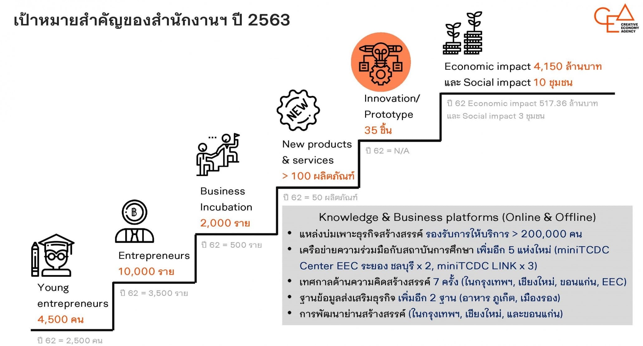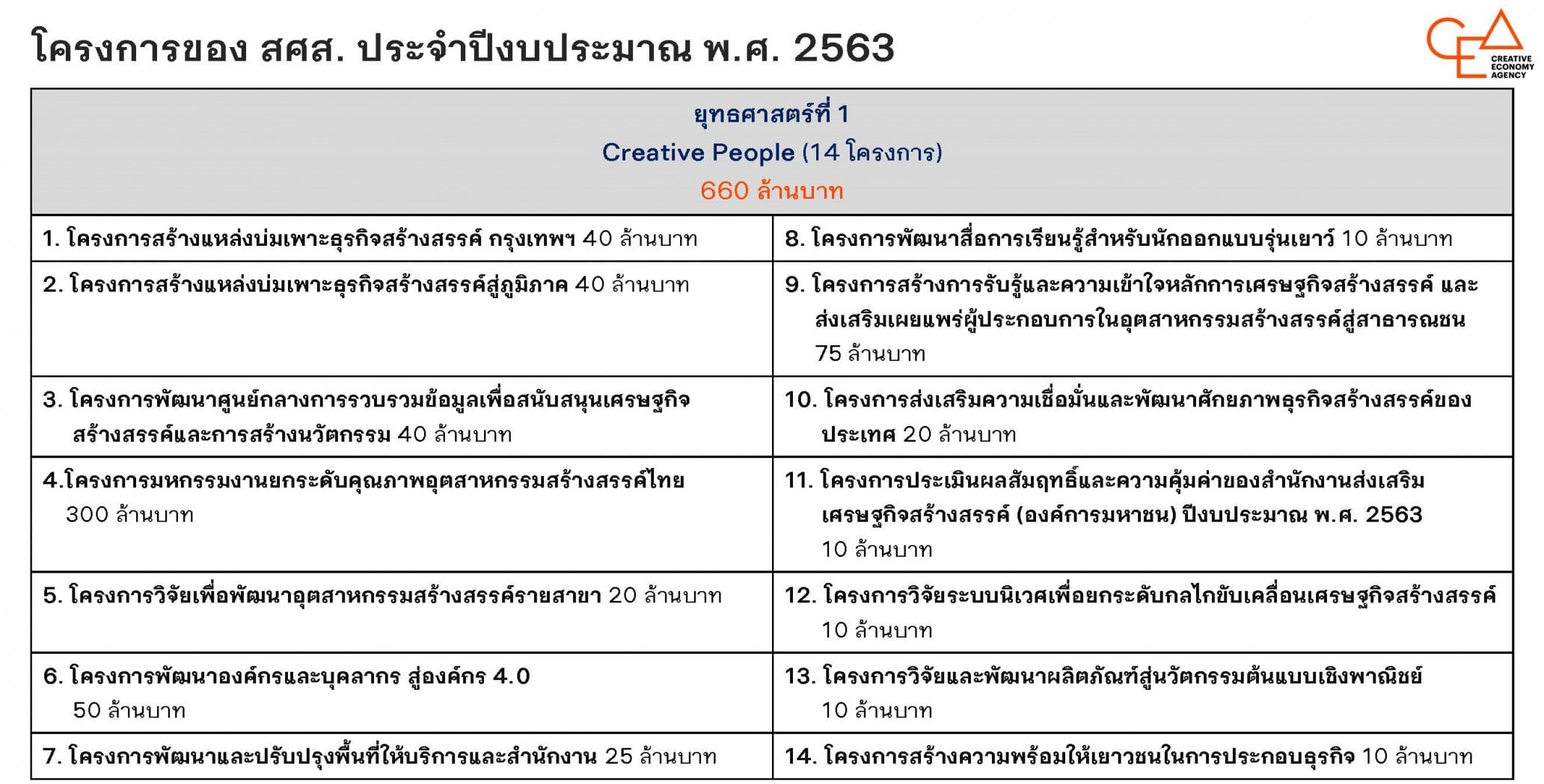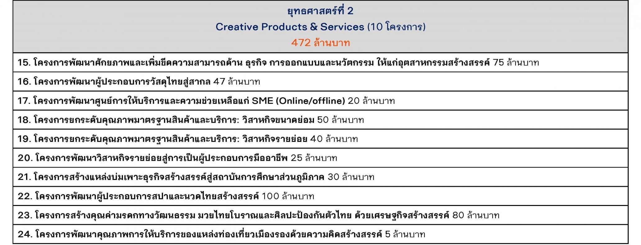 จัดตั้งสำนักงานส่งเสริมเศรษฐกิจสร้างสรรค์ขึ้นเป็นองค์การมหาชน ทำหน้าที่ส่งเสริมและพัฒนาศักยภาพของเศรษฐกิจสร้างสรรค์ เพื่อให้เศรษฐกิจสร้างสรรค์เป็นพลังขับเคลื่อนไปสู่เศรษฐกิจที่สมดุลและยั่งยืนในระยะยาว